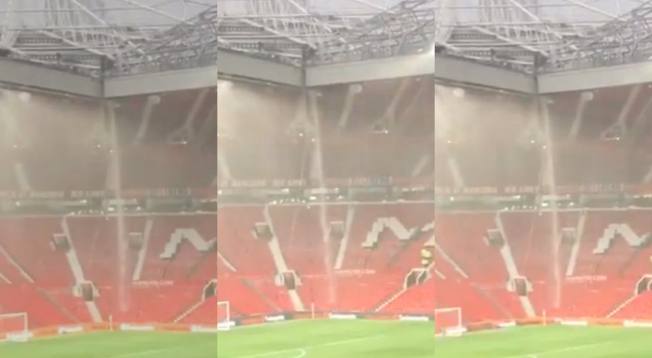 Water poured from the old trafford roof onto seats as a storm struck before manchester united take on man city conditions around the stadium had been bone dry as stewards reported for duty and the.
