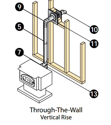 Clearances from exterior fixtures and walls vary depending on local building codes but all pellet stoves must vent to a location where materials such as leaves won t plug the opening and the.